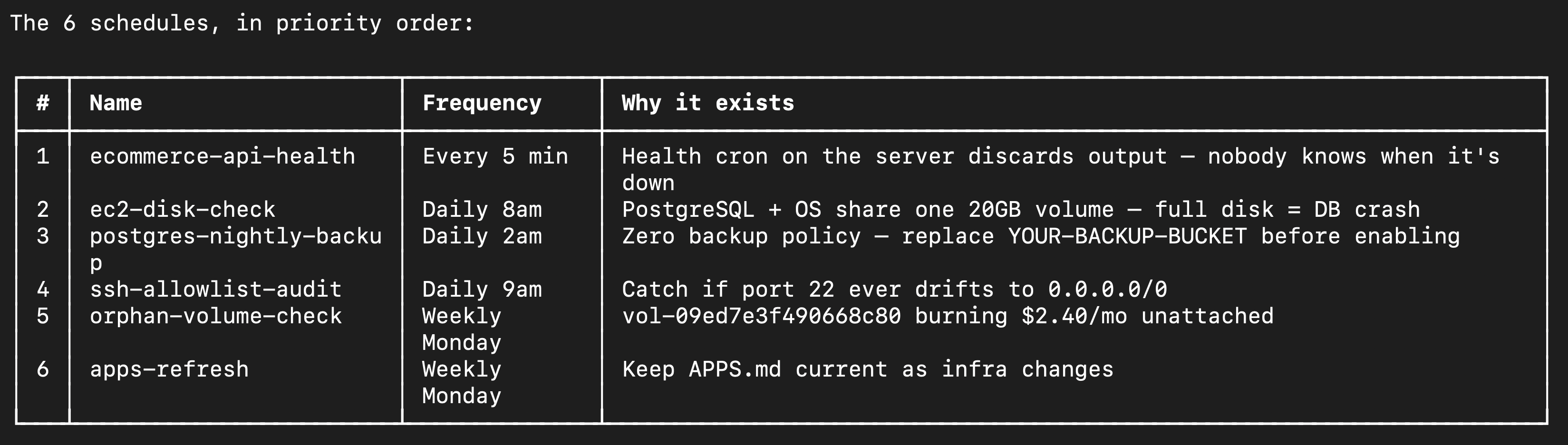 First, we see that it found one app running on a t3.small EC2 instance, which has both Flask + PostgreSQL&#x20;